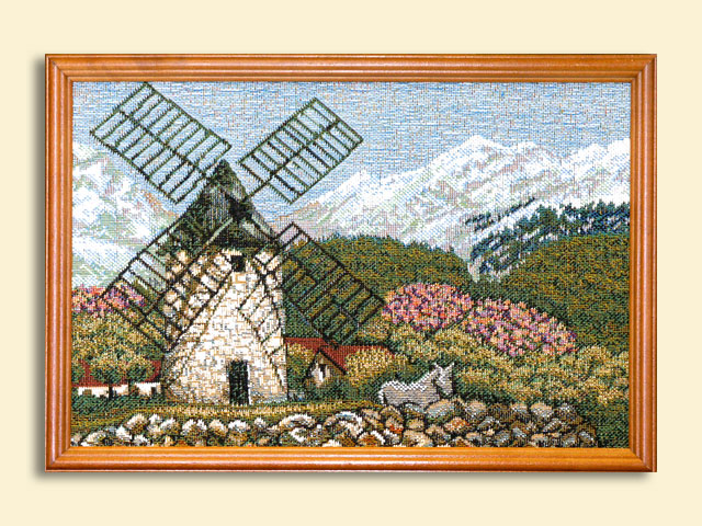 Гобелен "Мельница" в деревянной рамке